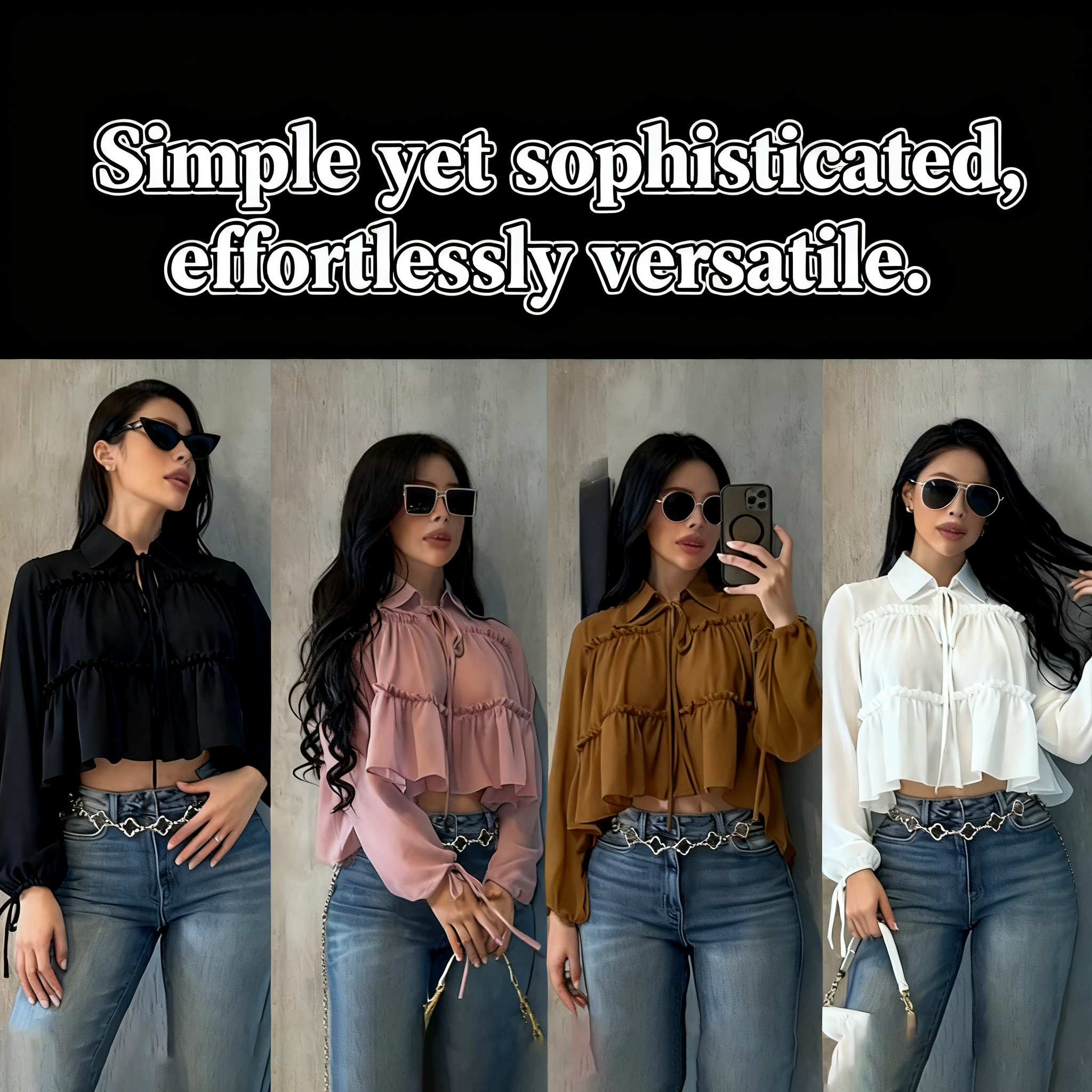 • Delight in the soft, flowing chiffon fabric that whispers luxury against your skin, making every moment feel special. With delicate ruffles cascading down the sleeves, this shirt adds a playful touch to any outfit, turning heads and sparking compliments.